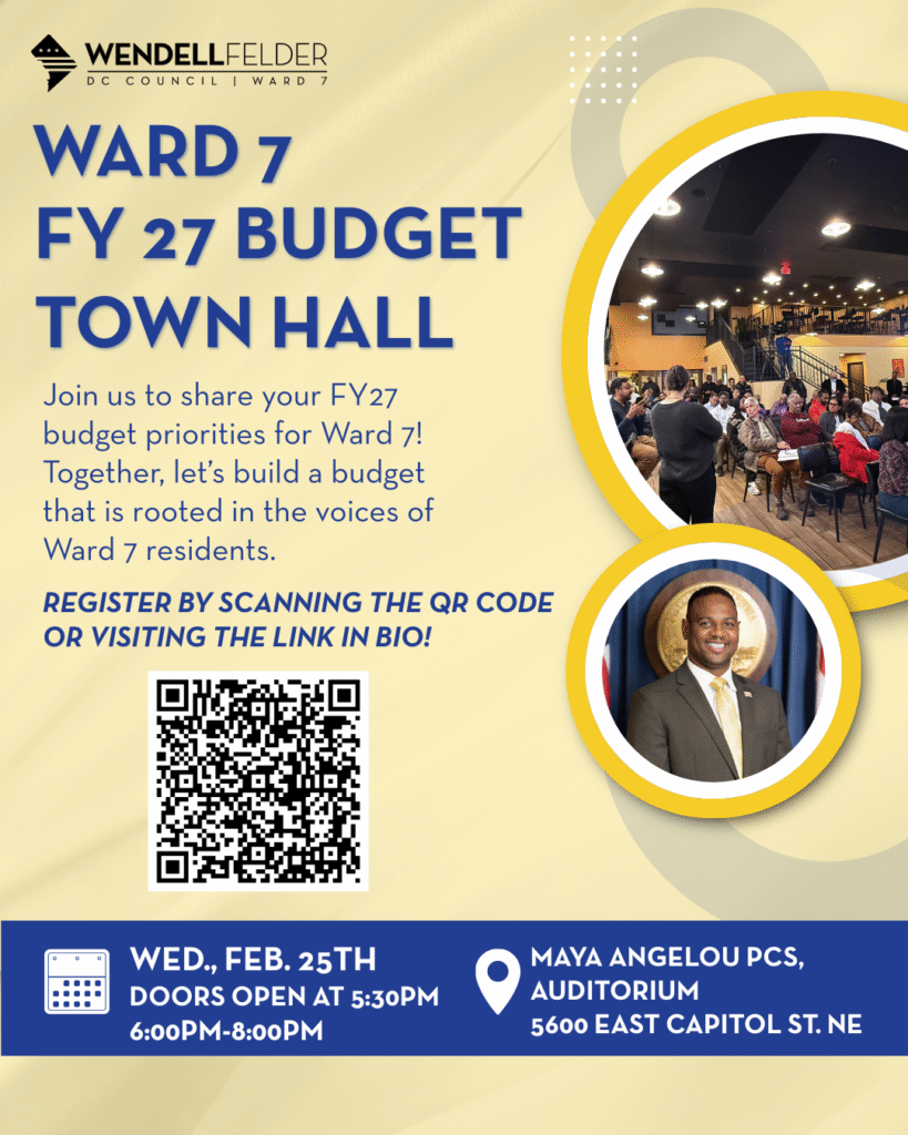 Register Here: https://www.eventbrite.com/e/councilmember-felders-ward-7-budget-town-hall-tickets-1982394307739?aff=oddtdtcreator